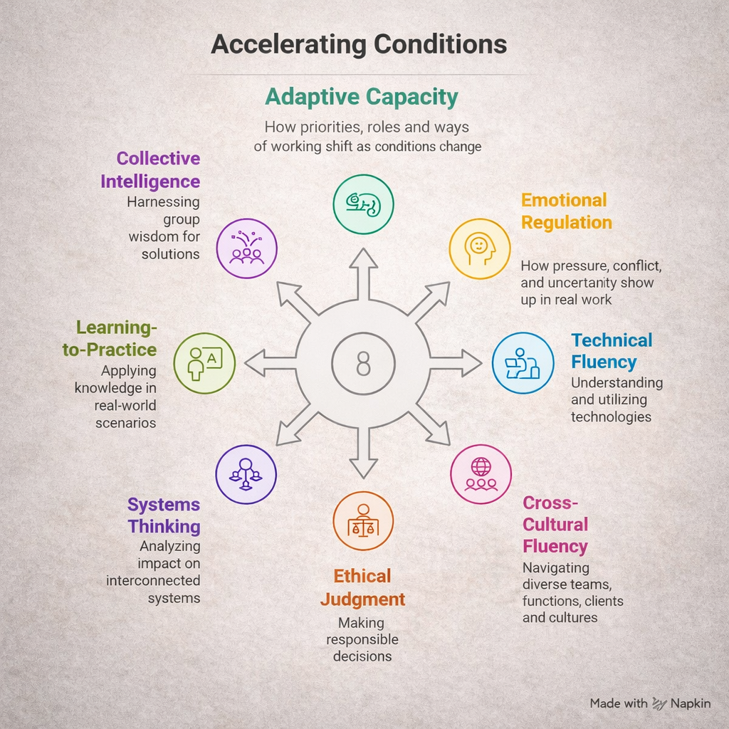When these conditions are intentionally designed and reinforced, organizations strengthen execution, reduce AI implementation risk, and absorb complexity without performance degradation.